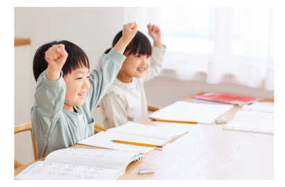 教師が言った単語や文章を自ら考えた動きでジェスチャーをしてもらい、全身を使って覚える方法(TPR「全身反応教授法」という教授法)などを取り入れています。